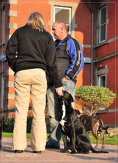 Heute haben uns Tanny, Micha, Gioia und Anouk (nicht ein Bild vom Dobi, ich muss mich selber klatschen...) mit Schokoladenkuchen besucht. Da Susann und Caschi mit Wanda auch Babies gucken kommen wollten und auch sonst einige begeisterte Welpenfans da waren, haben wir uns ulkigerweise alle vorm Hoftor gerudelt.