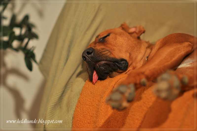 Gelb ist noch immer müde. Lag vorm Wohnzimmerschrank, lag auf'm Balkon, lag in Opa's Sessel, als der aufgestanden ist, blieb öde auf der Treppe stehen und hatte keine Lust mehr.